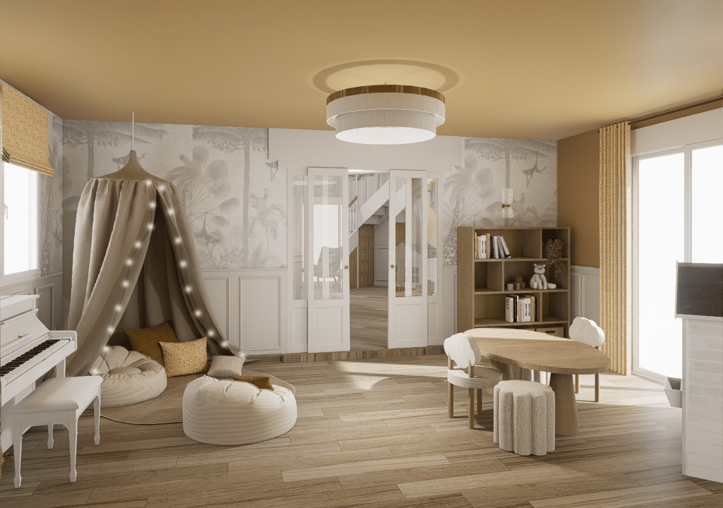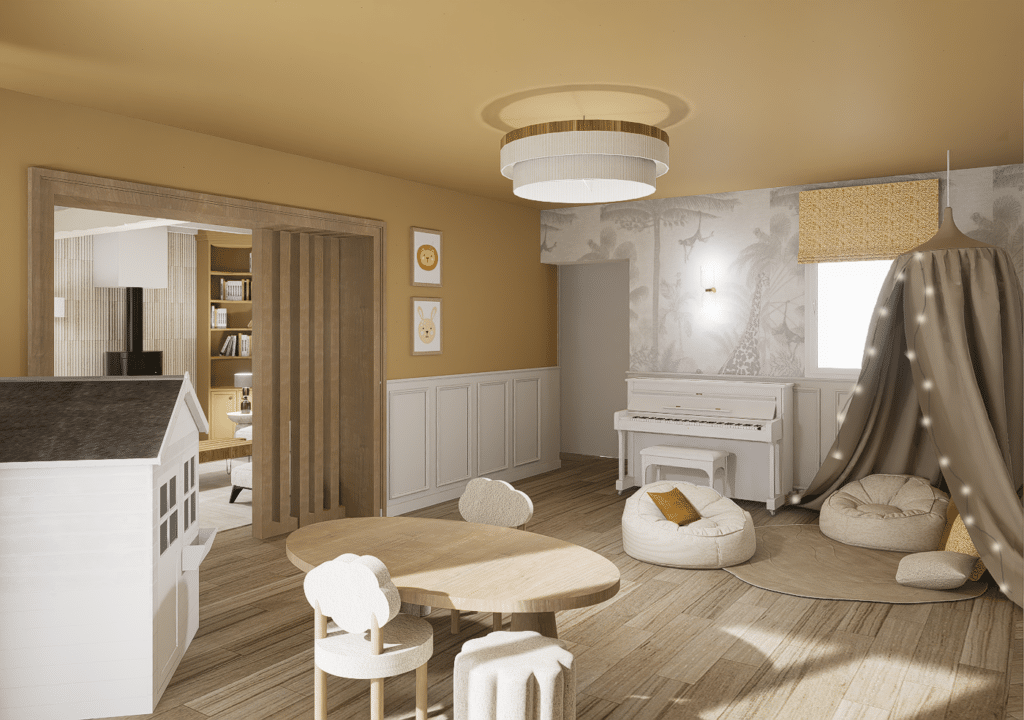 Ce projet a porté sur la transformation complète d’une maison familiale située en Rhône-Alpes, avec la volonté de créer un véritable lieu de vie  une maison chaleureuse, lumineuse et fonctionnelle, pensée pour accompagner le quotidien d’une famille.
